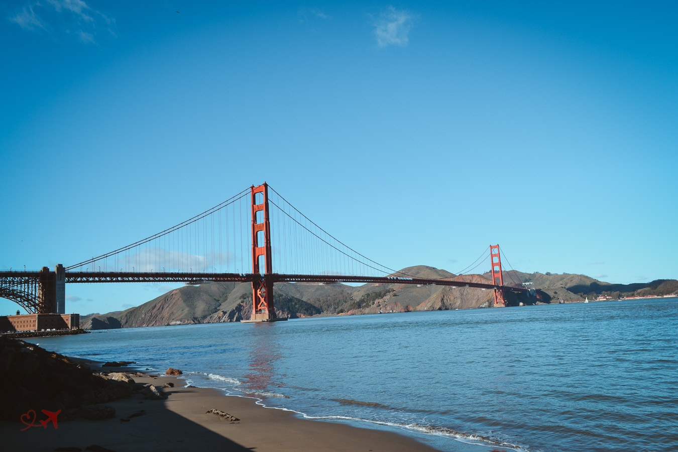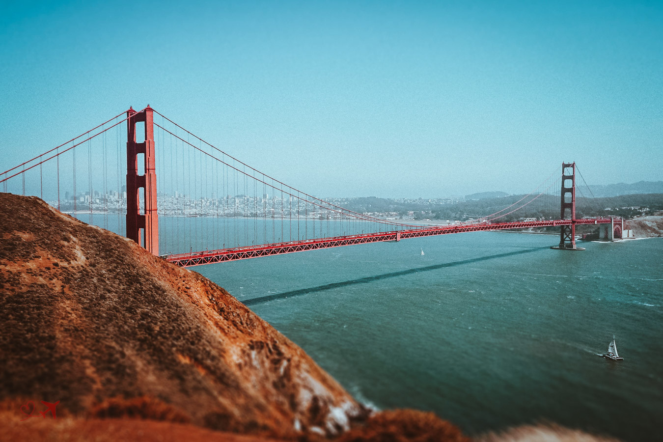 Von der Nordseite aus hat man einen traumhaften, wenn nicht sogar epischen Blick auf die Brücke und die Stadt San Francisco im Hintergrund. Sieht man genau hin, kannst Du auf dem Foto ein Segelboot erkennen, das gerade unter der Brücke durchfährt – Traumhaft.