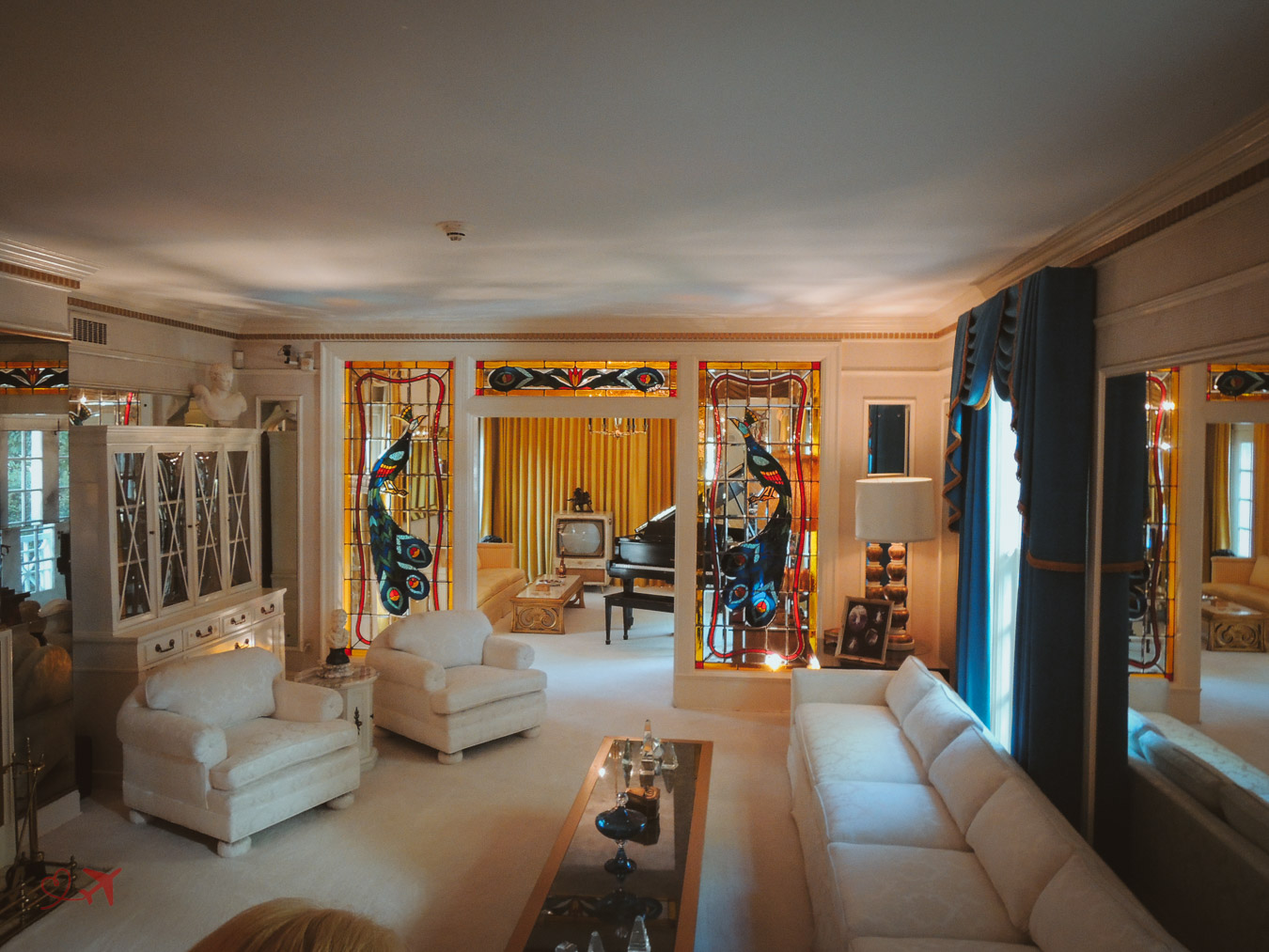Die schiere Größe des Hauses und der Einrichtung ist atemberaubend. Bereits zu dem Zeitpunkt an dem wir das Haus von außen betrachteten verschlägt es uns den Atem. Als wir dann die Wohnräume von Elvis betaten fühlte es sich sofort an als wenn er selbst noch darin leben würde. – Aber von Anfang, hier ein kleiner Streifzug durch das Anwesen.